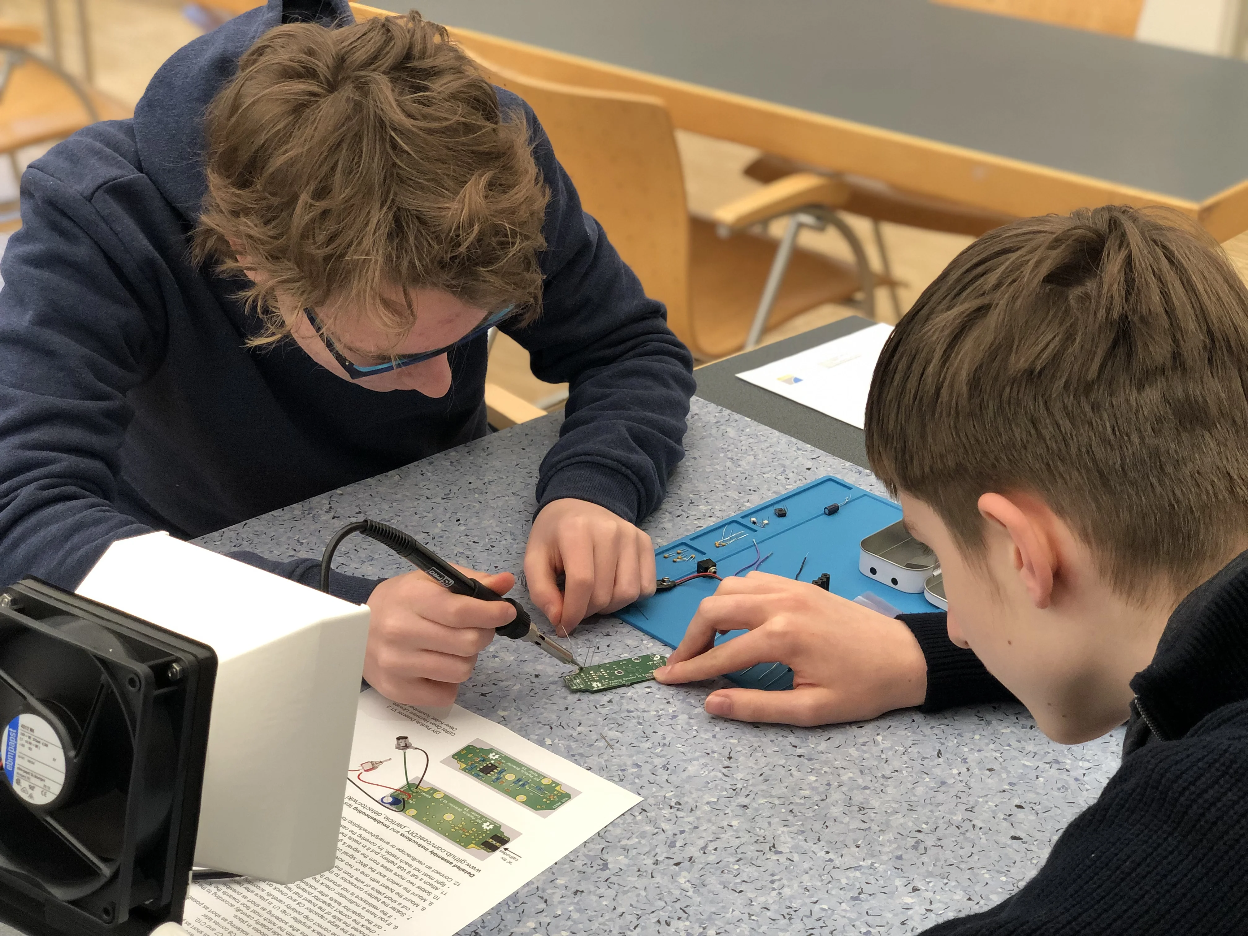 Schüler löten die elektronischen Bauteile des Detektors zusammen IMG_9882.webp image/webp Typ image/webp Dimension Abmessungen 4032x3024 Size Dateigröße 1.2 MB Herunterladen Bild in voller Größe anzeigen…